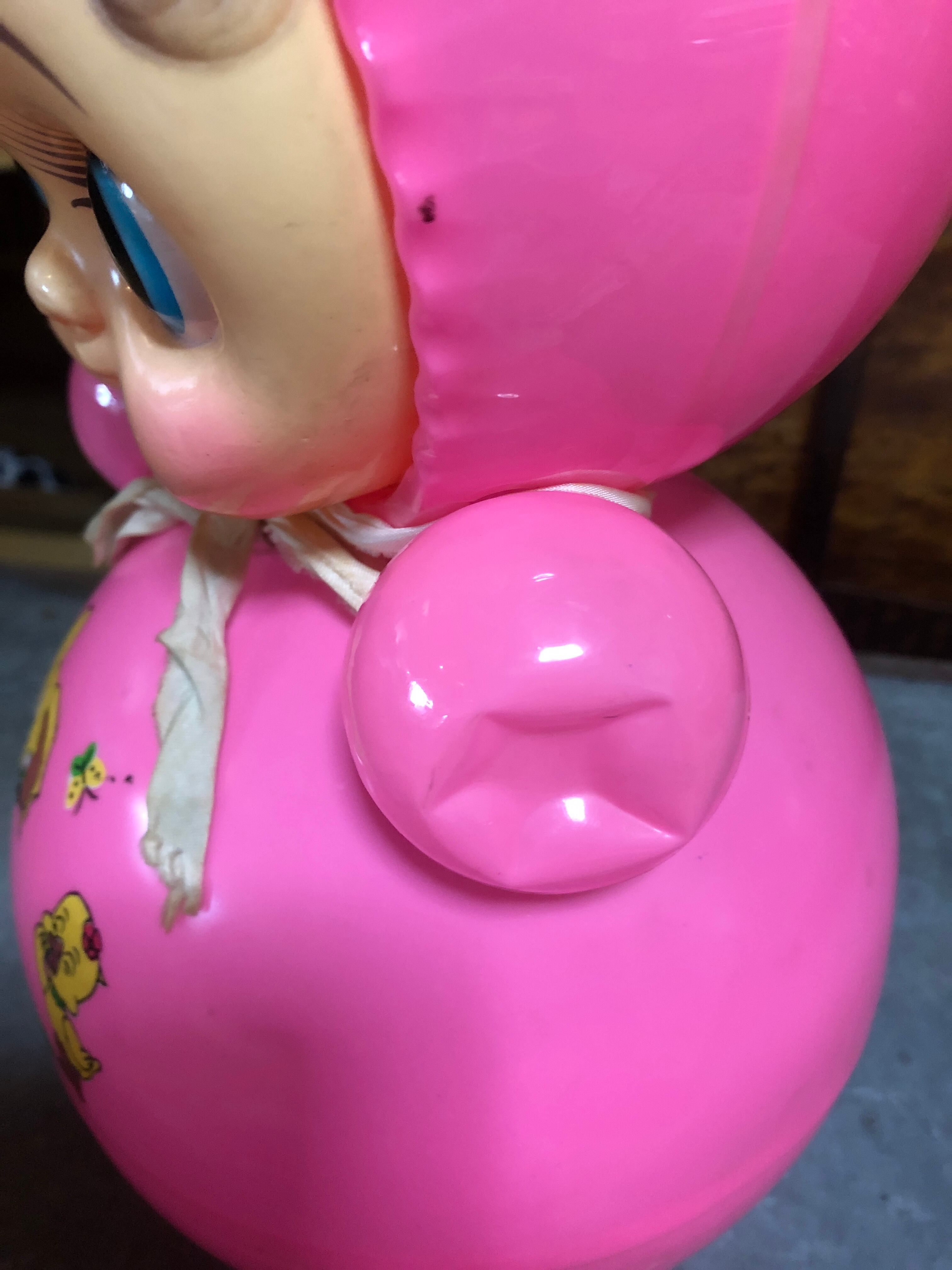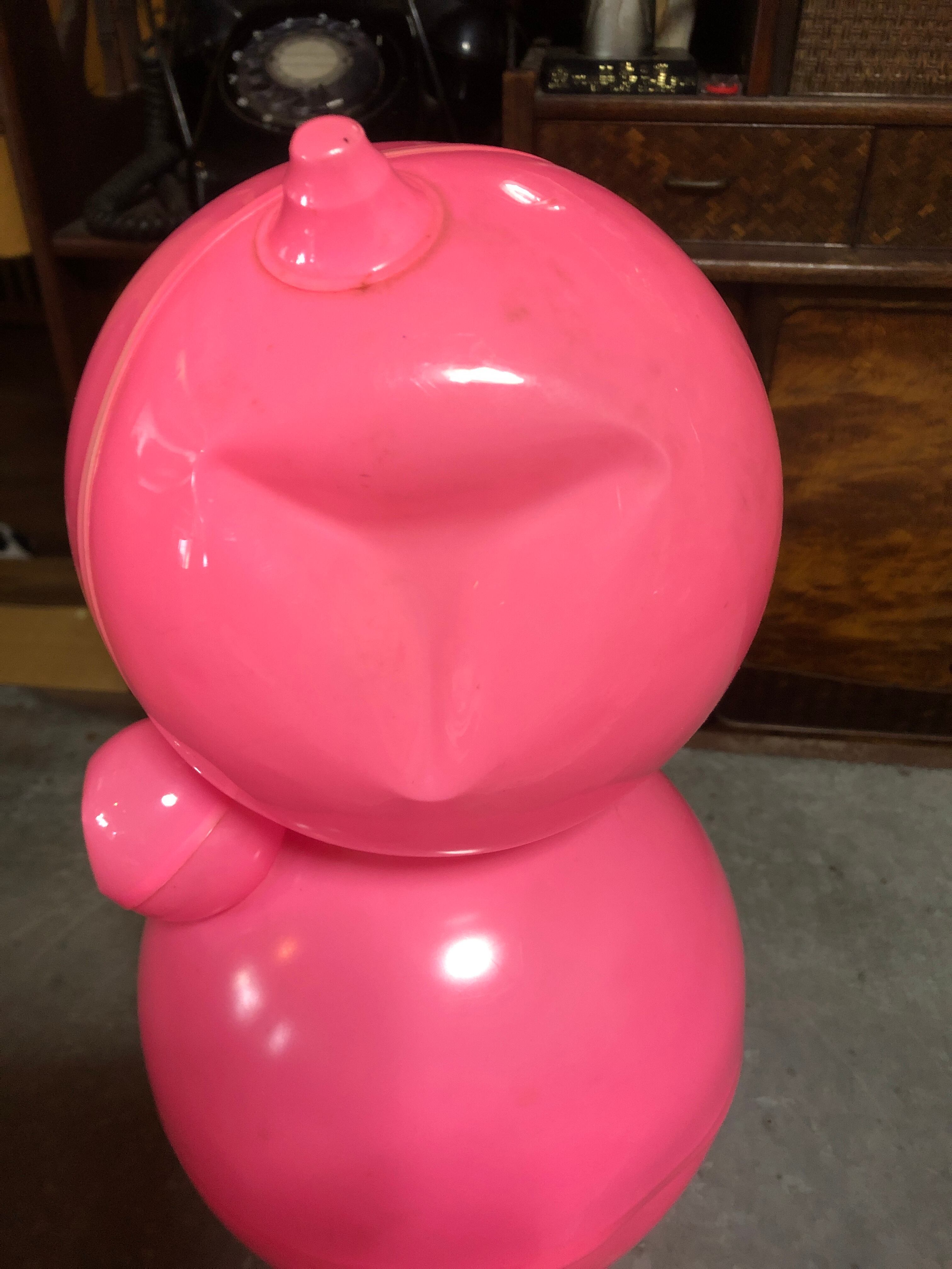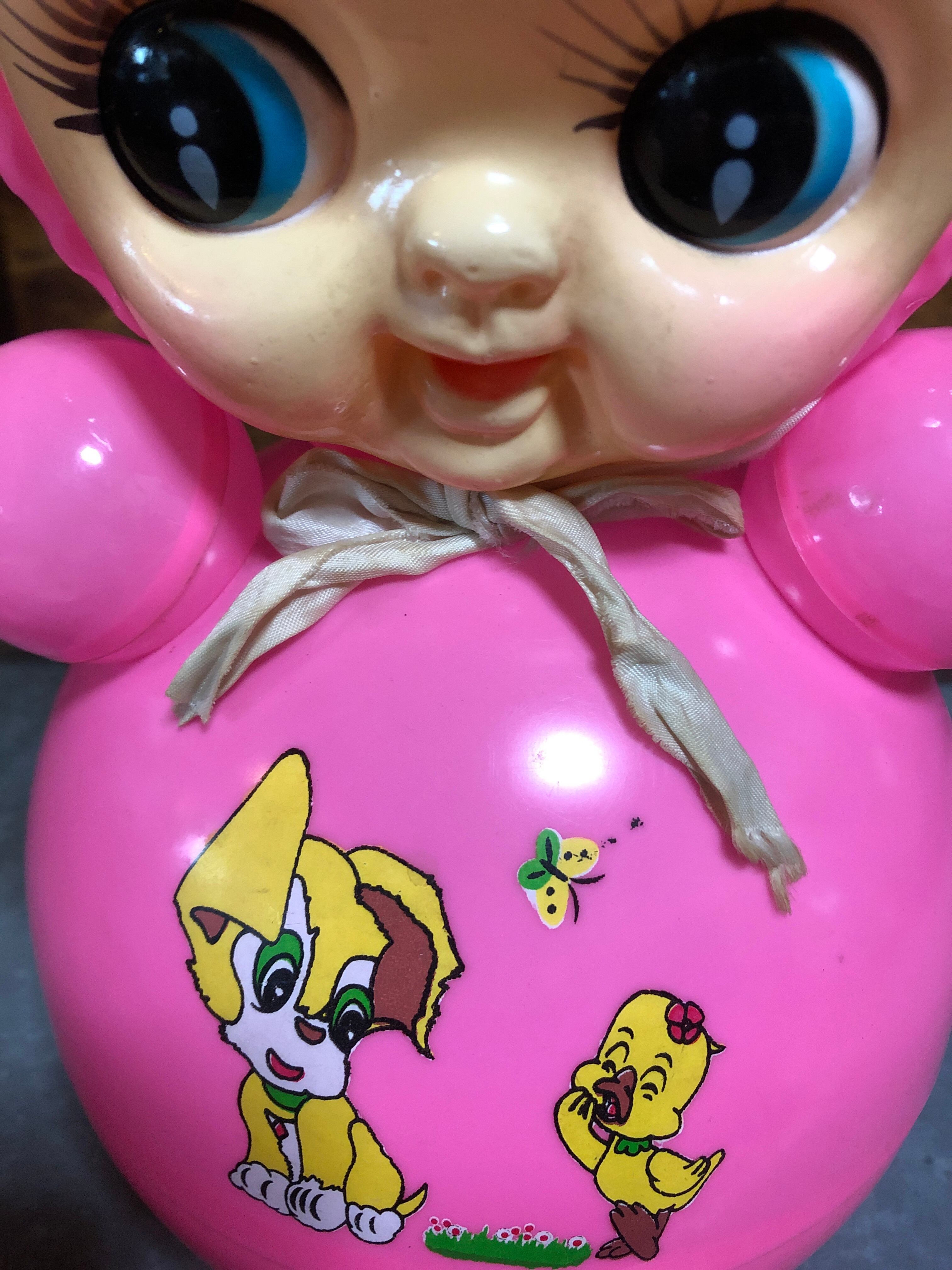 かわいい音色の懐かしいピンク色の起き上がり小法師です。