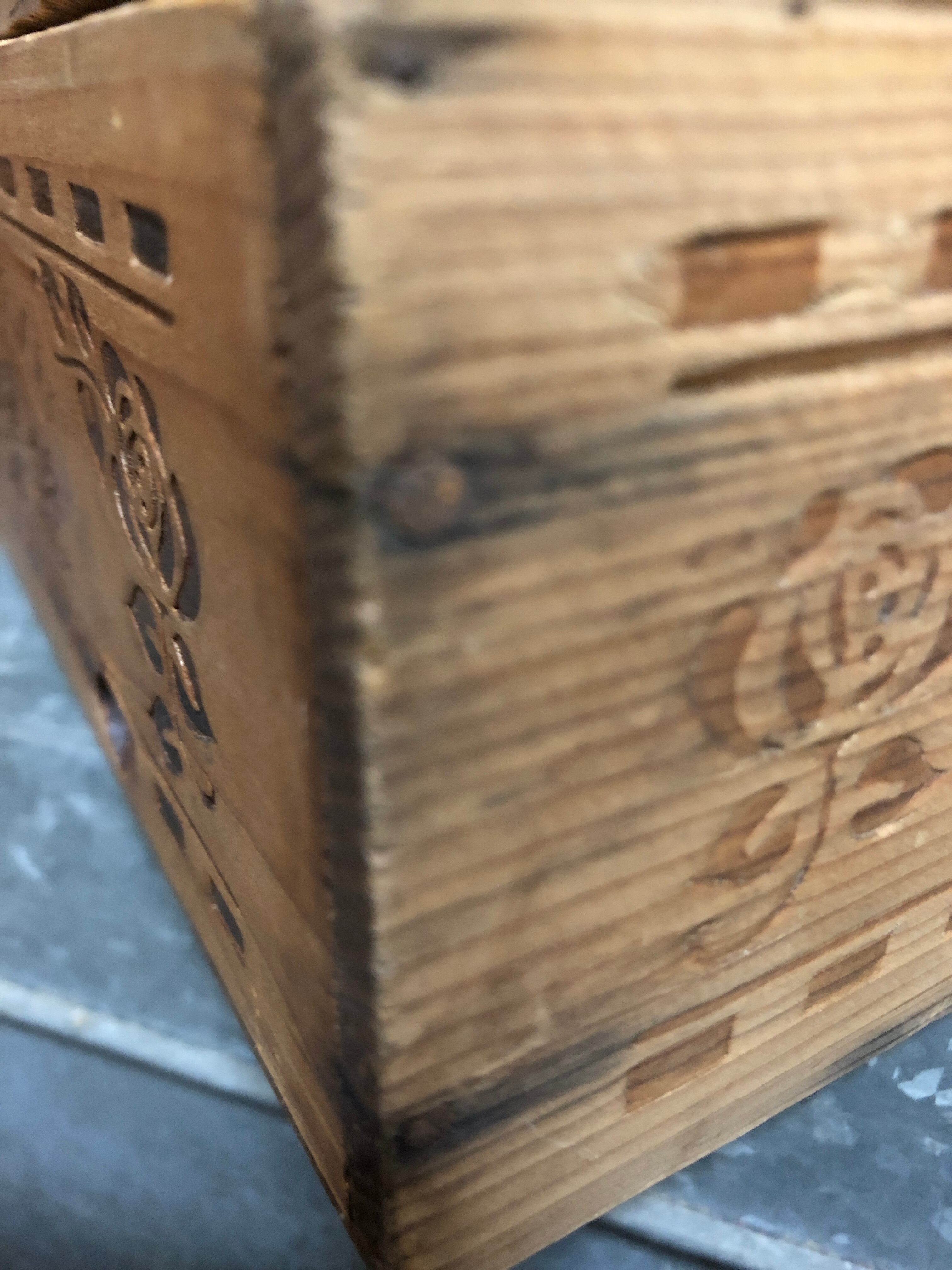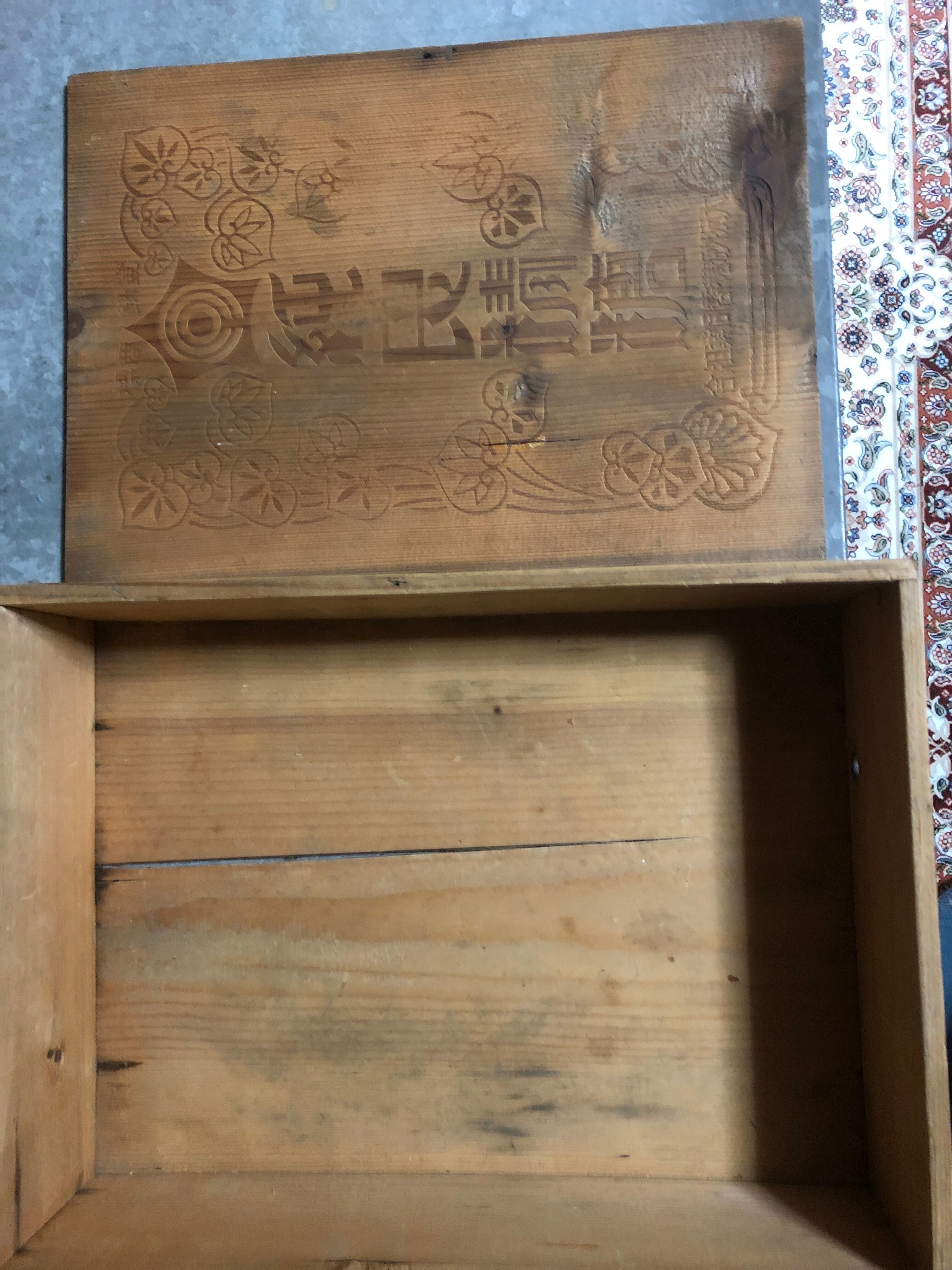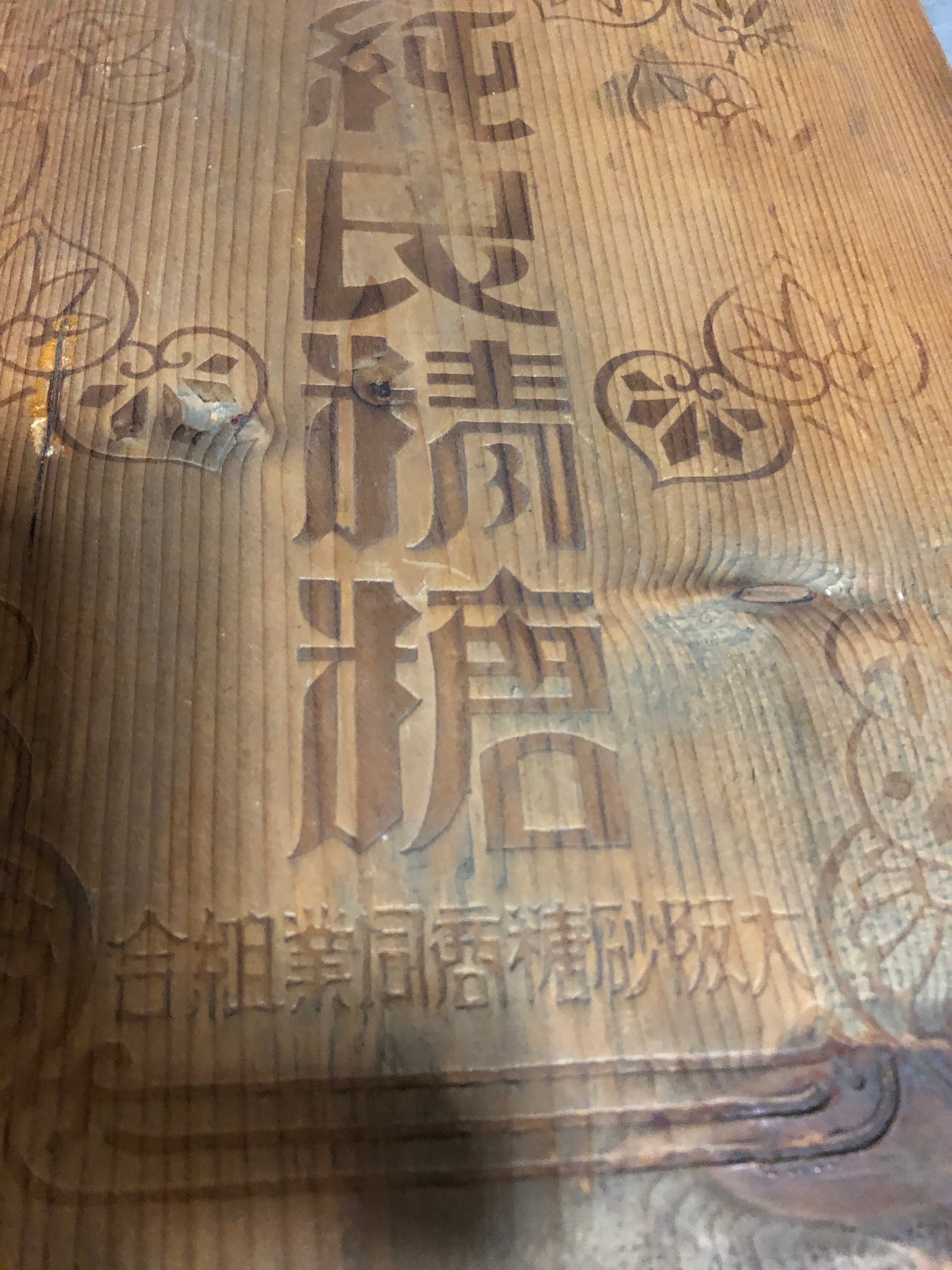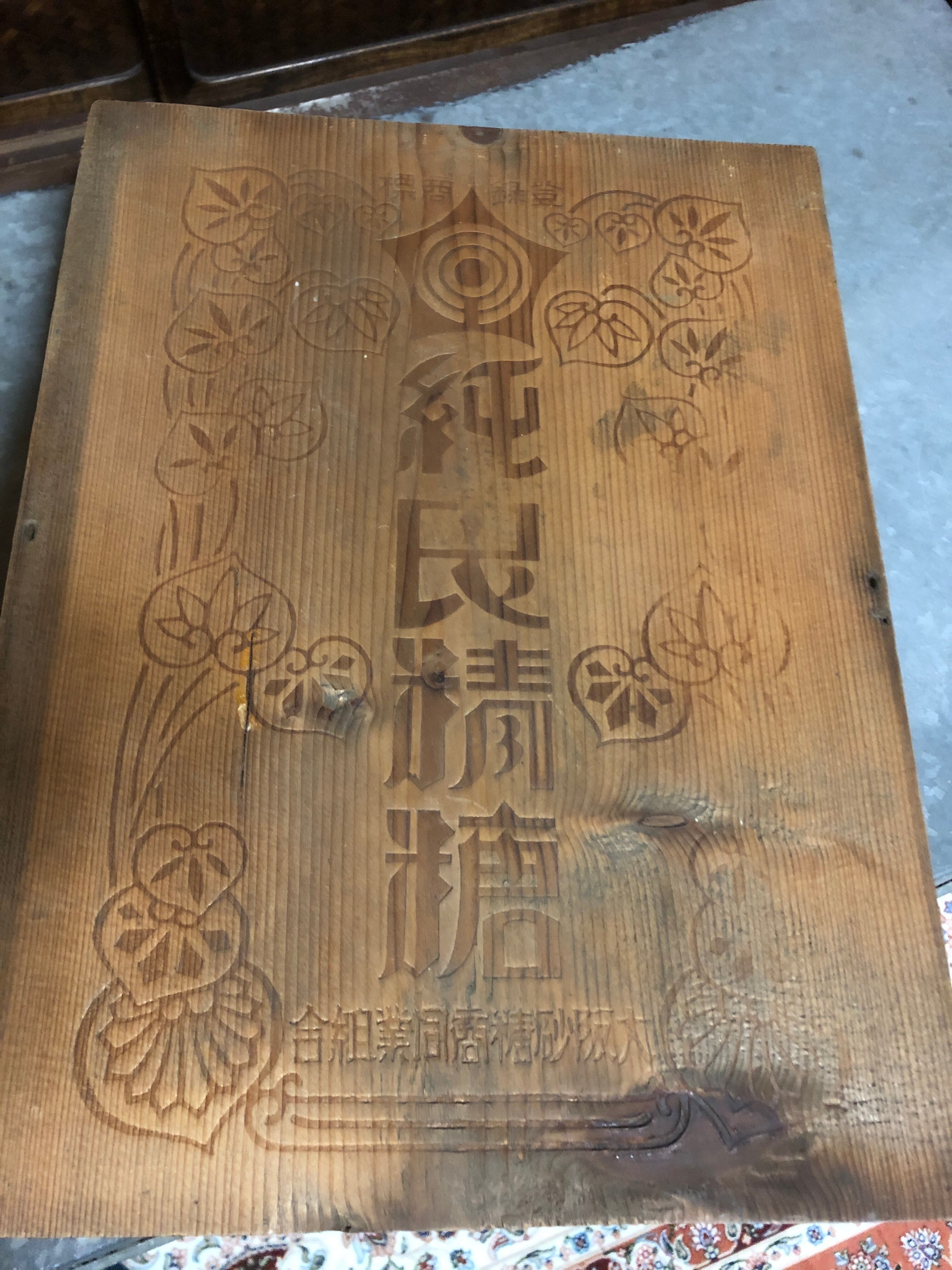 昭和初期の砂糖箱です。状態はキレイだと思います。箱の底には最大幅3ミリの亀裂が24センチあります。細かな部品など以外でお使いいただくか、底に敷物を使ってご利用ください。